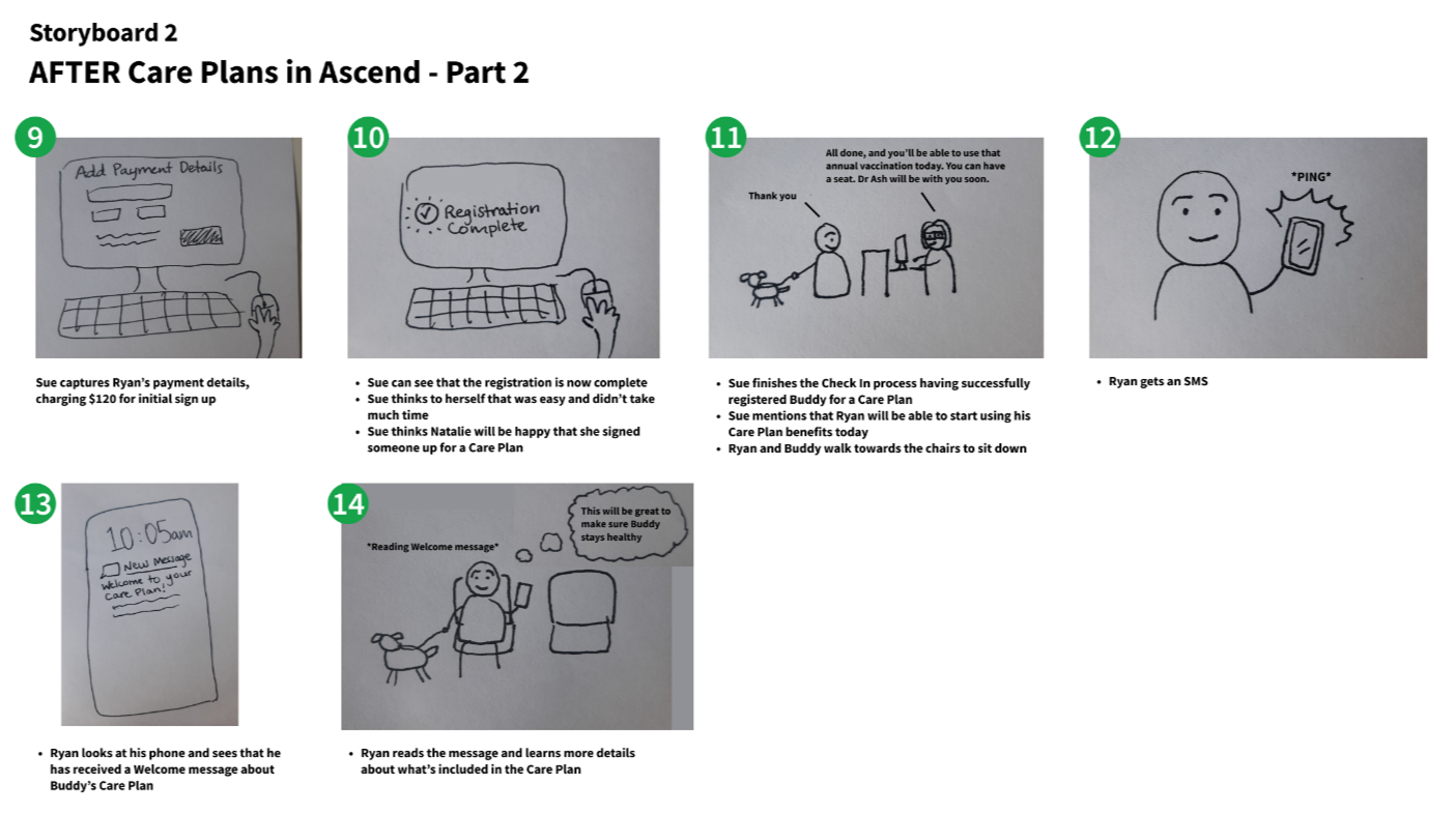 This storyboard was an experiment on my part, which turned out to be a great communication tool for testing our internal assumptions with real users! The “After” storyboard also helped to get the dev team feeling excited about building the future of care plans in Ascend!